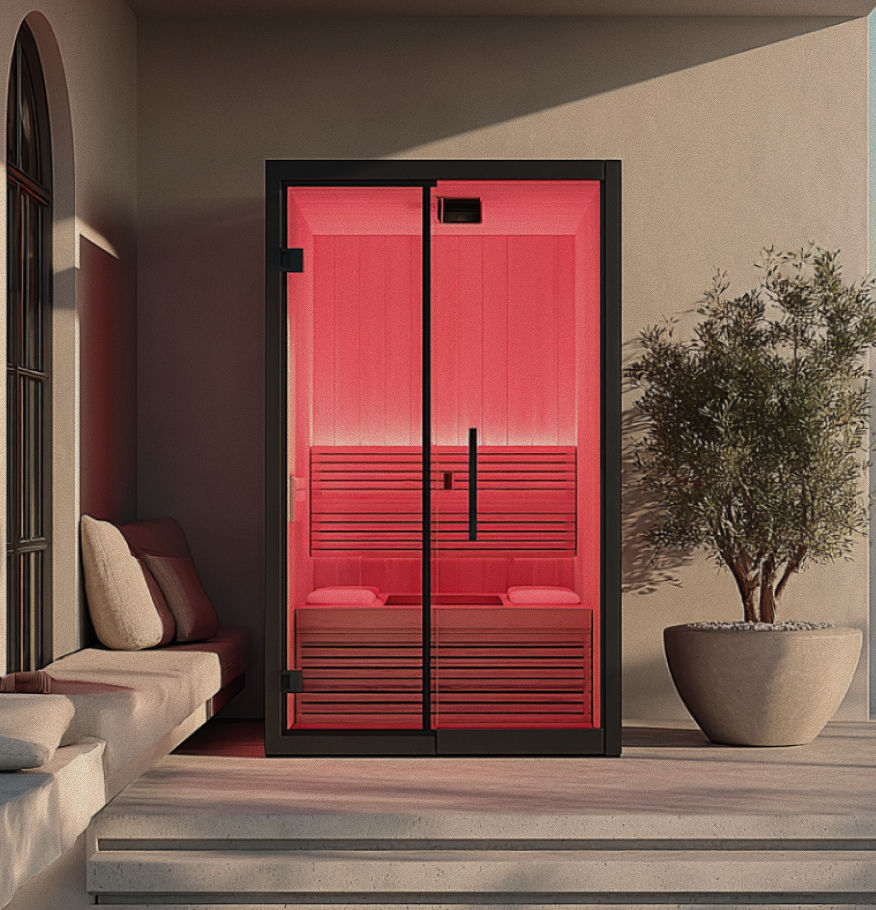 The 2-person infrared sauna is the documented sweet spot. Optimal heat distribution around the full body. Enough room to stretch, breathe, and completely decompress. Heats faster. Performs better. Fits in any room. This isn't our entry-level option — it's the only option we've ever offered.